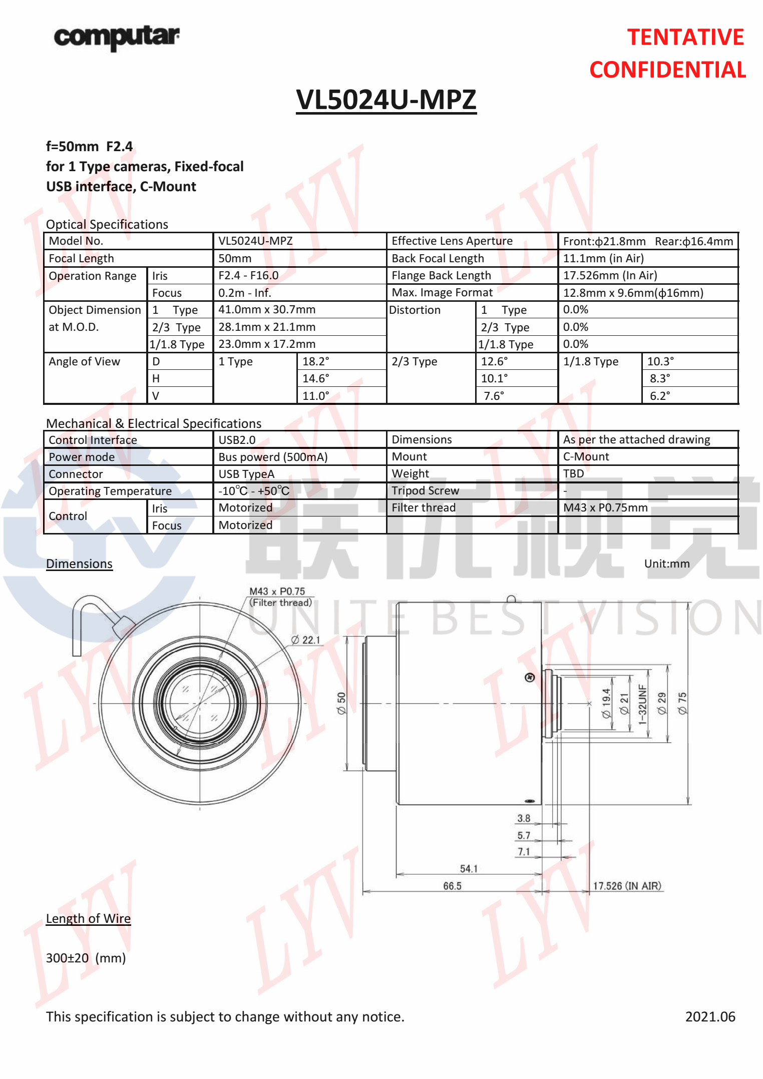 全新電動鏡頭,可通過 USB 供電和控制(適用于 I2C 版本)